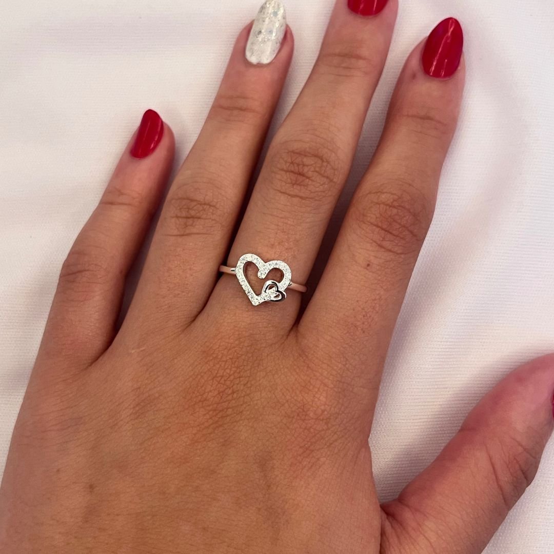 Adicione uma peça romântica e cheia de estilo ao seu inventário. Este Anel em Prata 925 apresenta um design charmoso de coração, combinando a metade cravejada com a metade lisa polida.