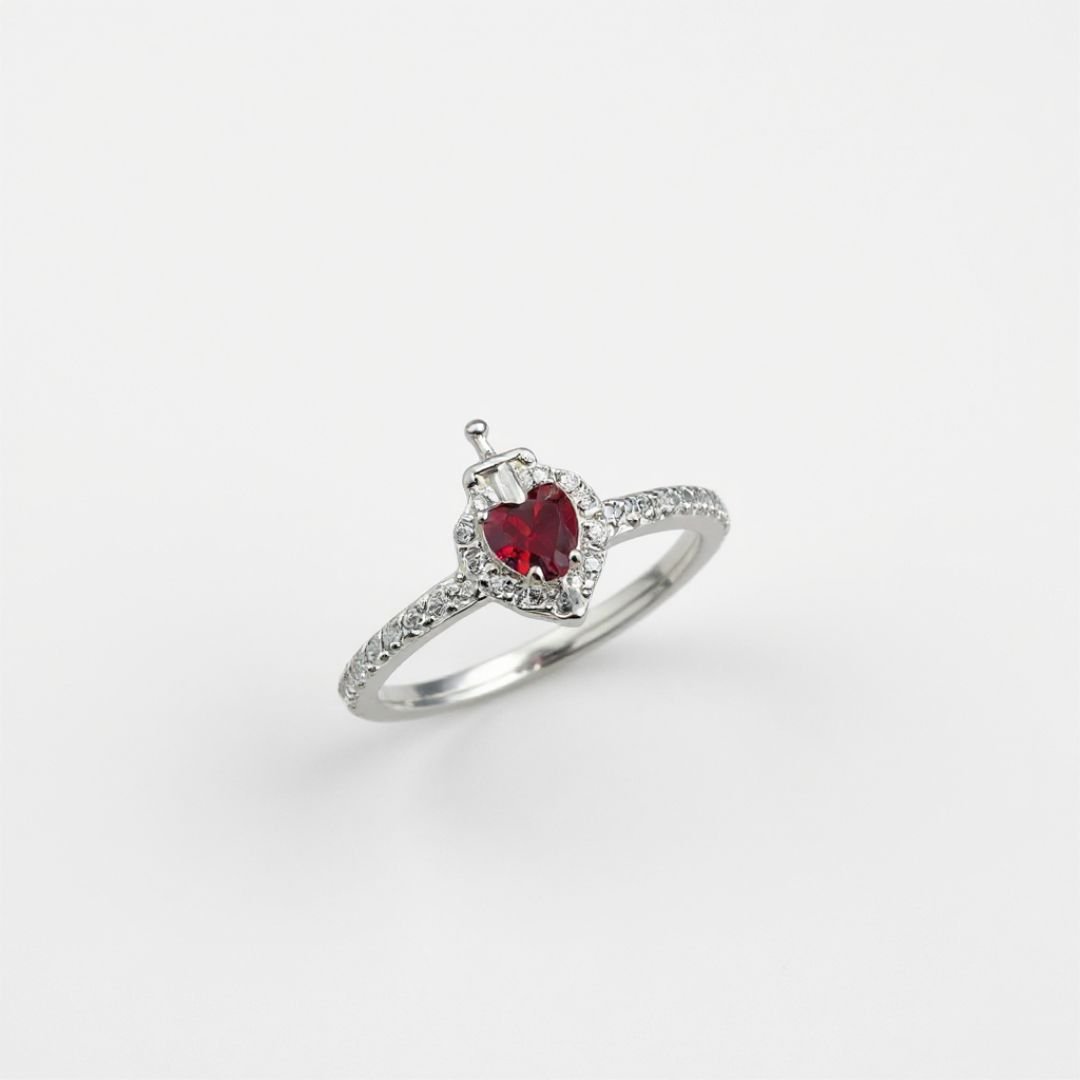 Adicione uma peça temática e cheia de personalidade ao seu mix de produtos. Este Anel em Prata 925 captura o charme sombrio e elegante da "Rainha Má", apresentando um coração central com uma intensa zircônia vermelha, emoldurado por micro zircônias cristal. Um item que atrai fãs de contos de fadas e moda ousada.