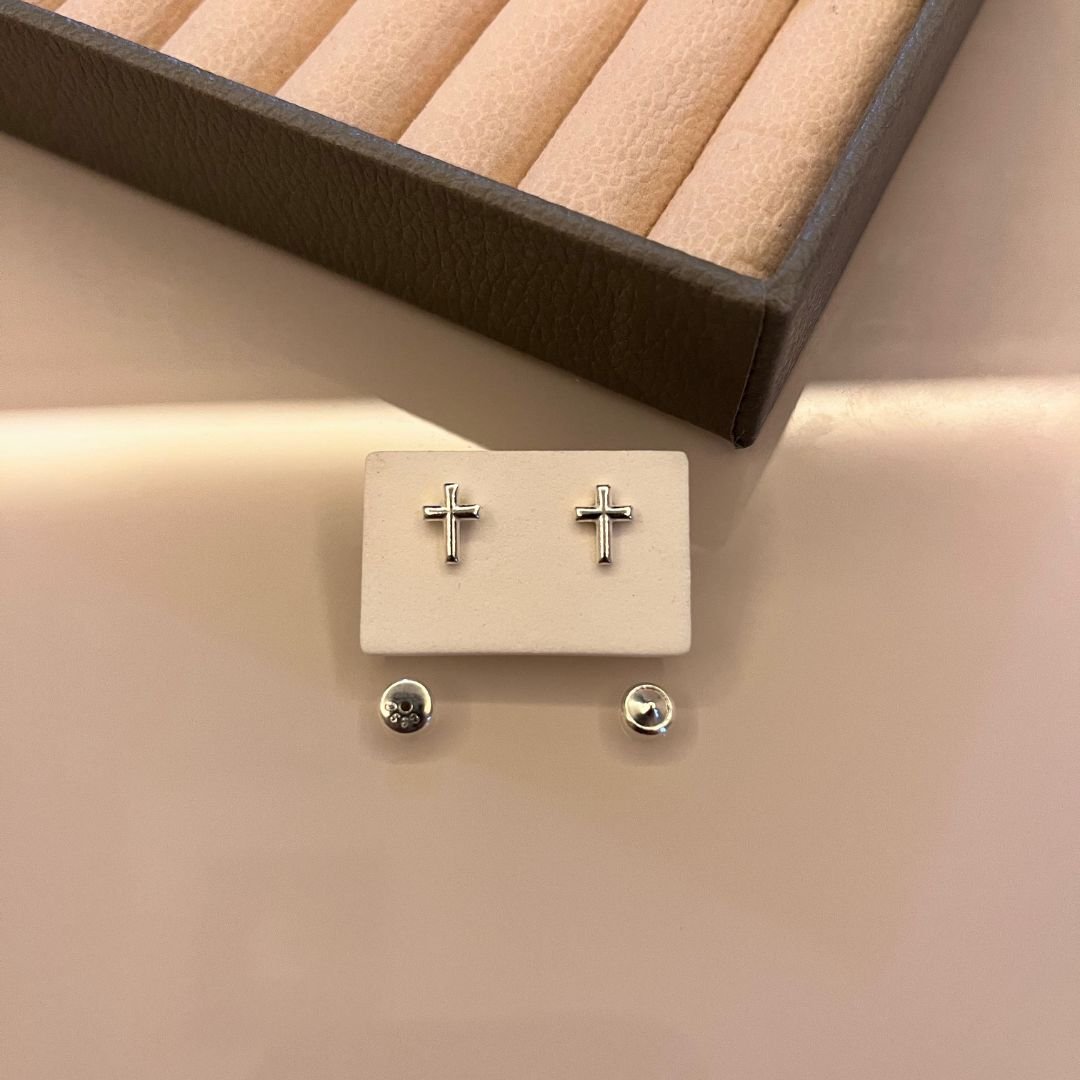 ✨ Fé e Delicadeza: Brinco Baby Cruz em Prata 925