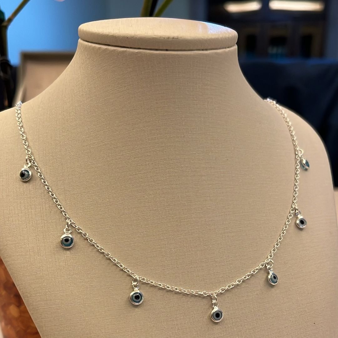 Colar com 6 Pingentes Olho Grego 4mm - 40cm Prata 925