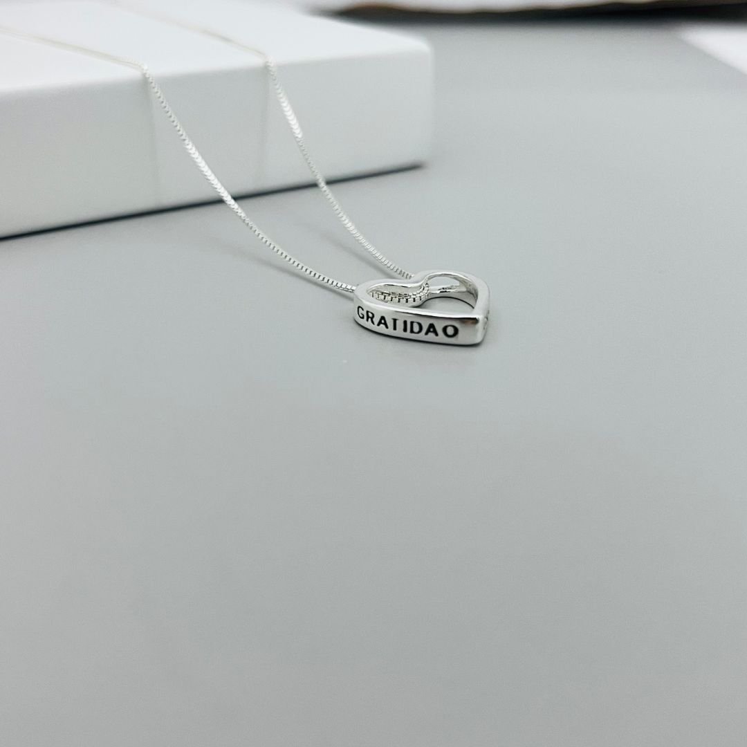 - Pingente: Coração vazado Tiffany com 14mm e gravação “Gratidão”
