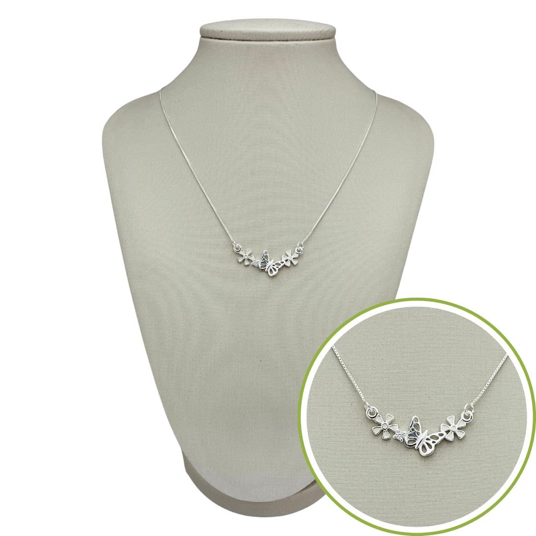 Colar Borboleta com Flores 1 Zircônia com V12 40cm + 5cm extensor