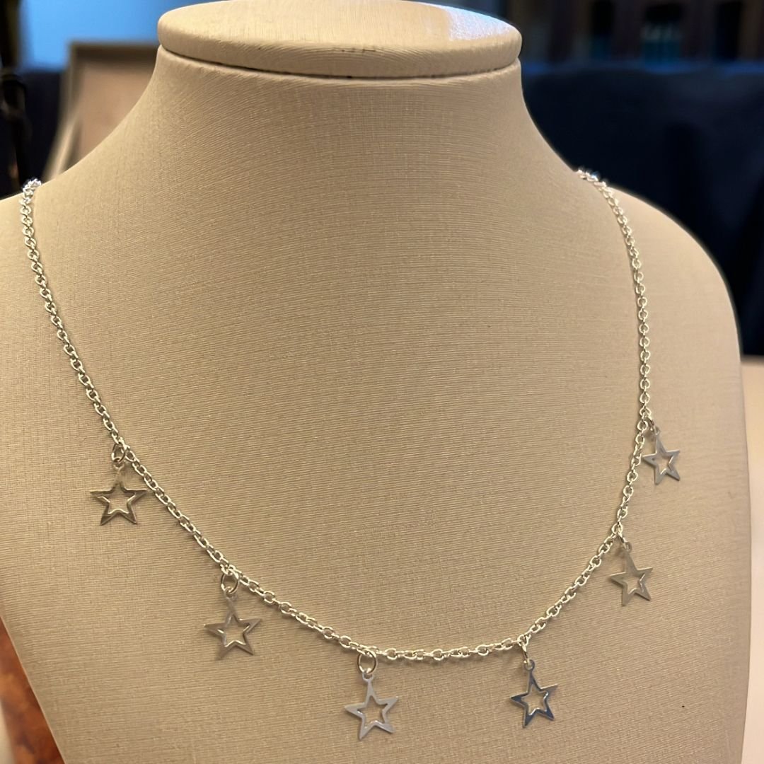 - Design Único e Versátil: Os múltiplos pingentes de estrelas vazadas agregam um visual delicado e cheio de movimento, ideal para ser usado sozinho ou em mix de colares.