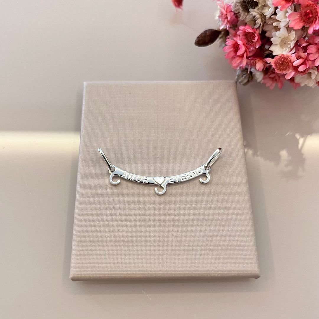 Adicione uma peça de alto valor emocional e versatilidade ao seu mix de produtos. Este Pingente Canga Tripla em Prata 925 é projetado para acomodar até 3 pingentes (como bonequinhos de filhos, pets, etc.) e traz a gravação da mensagem "Amor Eterno". Um item que atrai um público fiel em datas comemorativas como Dia das Mães, Dia dos Avós e Natal.