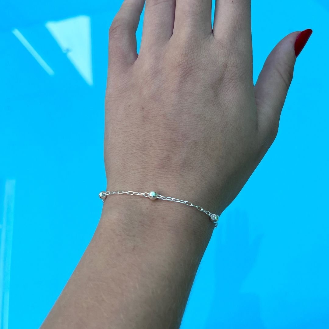 Confeccionada em Prata 925 Atacado de lei, esta joia exibe bolinhas perfeitamente polidas de 4mm, que capturam a luz de maneira sutil e elegante. Com 19cm de comprimento, ela se ajusta confortavelmente, sendo a escolha ideal para clientes que valorizam o minimalismo e a qualidade das Joias em Prata 925. Sua versatilidade a torna perfeita para presentes ou para a construção de coleções pessoais.