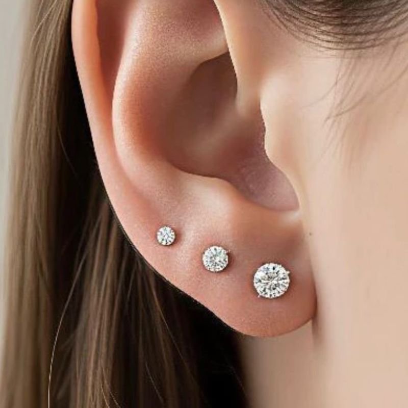 Conteúdo: 3 Pares de Brincos em Zircônia (4mm, 5mm e 6mm).